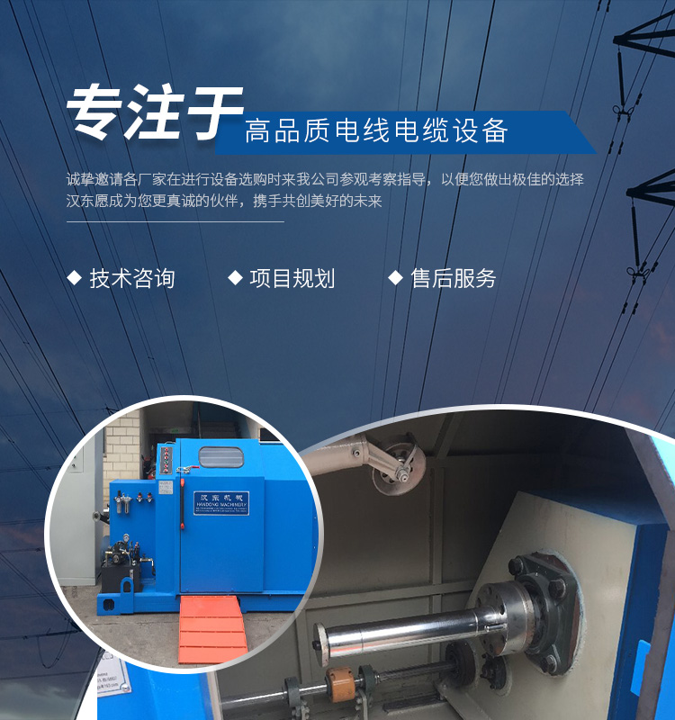 常州漢東機械始創于2006年,是集電線電纜機械設計、開發、制造、安裝、調試為一體化的高科技企業。本公司自開業以來,積極引進日本,歐美等國外電線電纜設備之先進技術,先后成功推出了達到行業先進水平的電線電纜設備,主要產品有擠出、繞包、束線、成纜等電線電纜固定設備。在提供系統設備的同時,還向客戶提供售前技術咨詢、項目規劃、以及售后服務。我公司本著“以人為本、科技先導、用戶為上”的宗旨,為客戶提供牢靠的產品與省心的服務。漢東愿成為您更真誠的伙伴,攜手共創美好的未來!